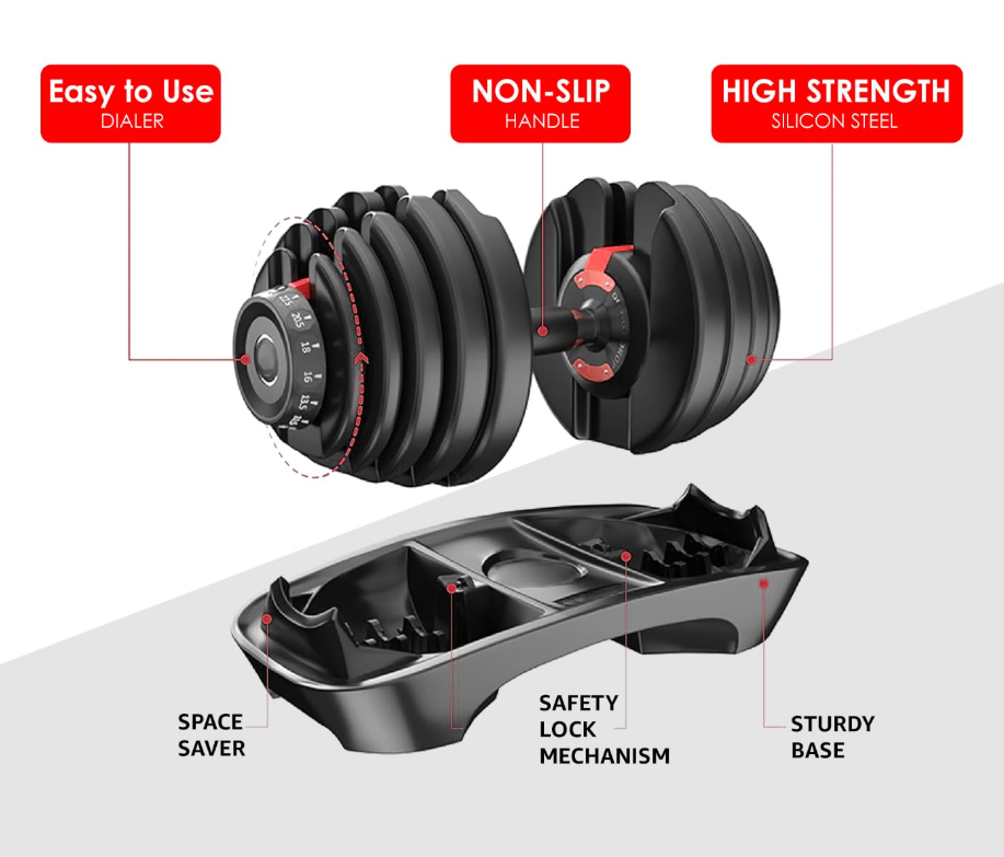 20kg Adjustable Dumbbell Set – 5-in-1 with Anti-Slip Handle | Home Gym